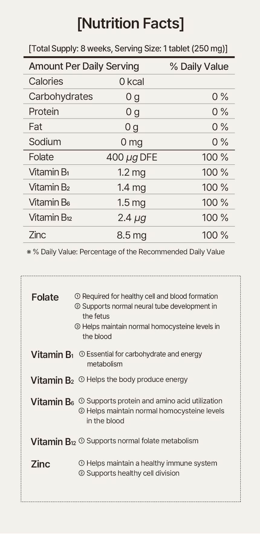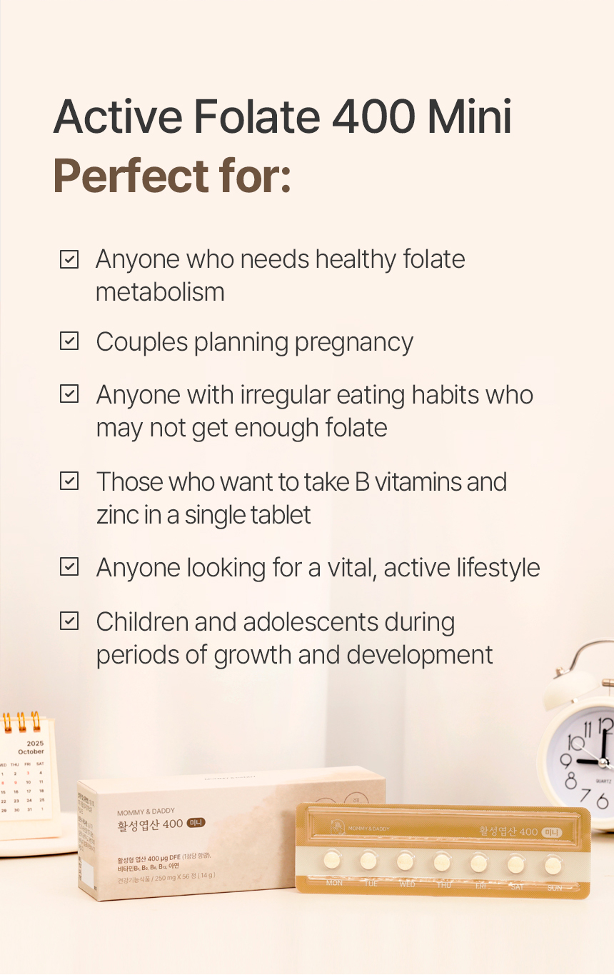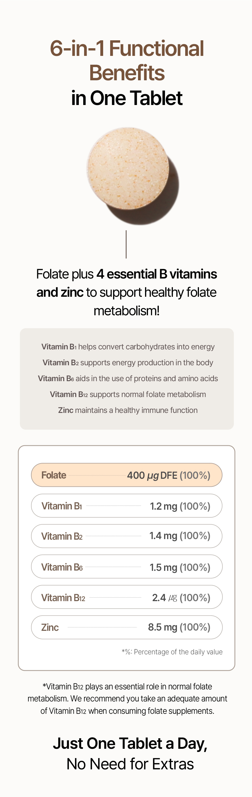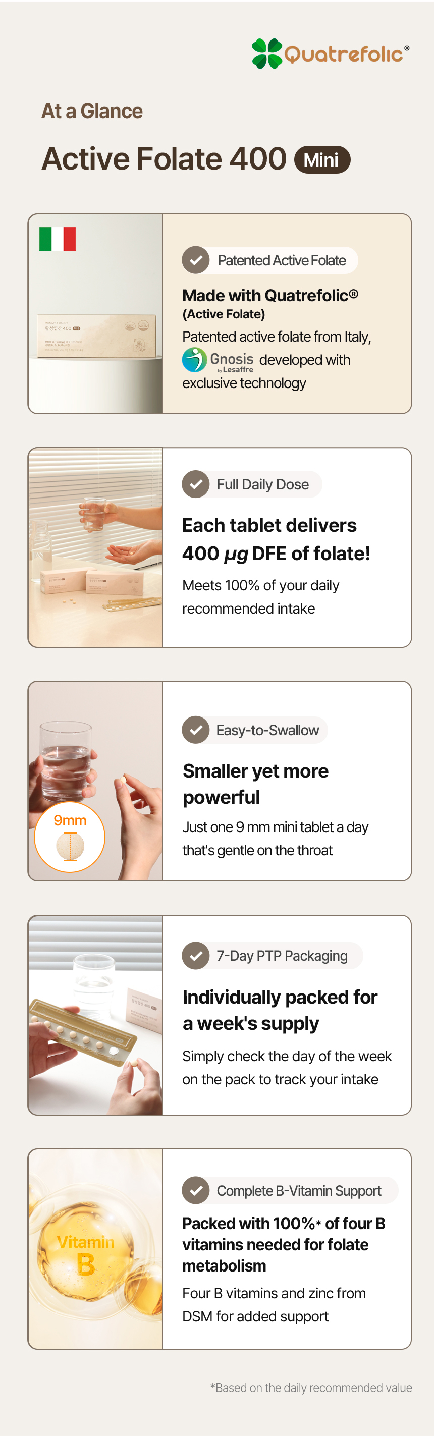- Easy, once-daily tablet for simple and stress-free folate supplementation