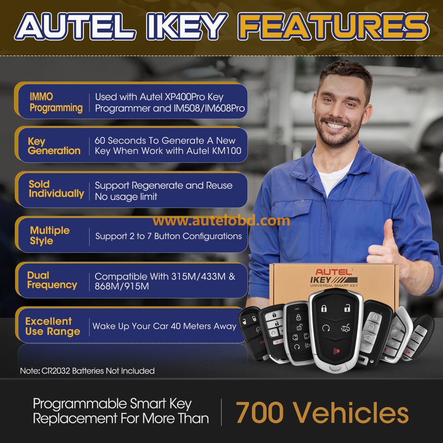 • Programs Autel’s IKEY universal key as smart key replacement for more than 700 vehicles