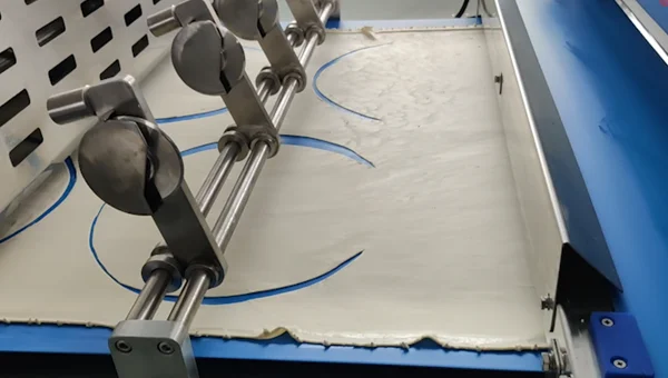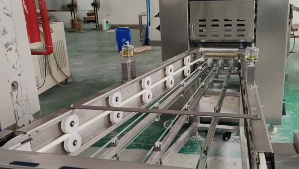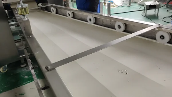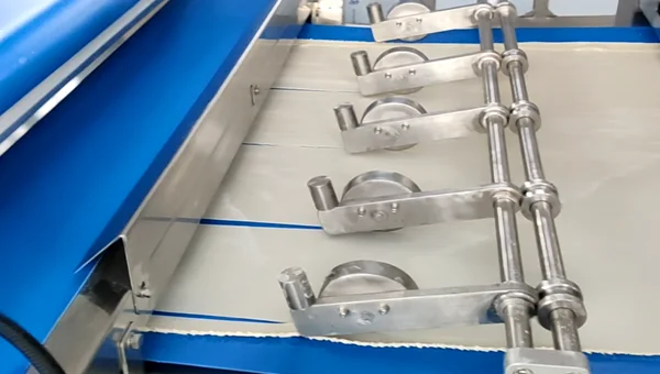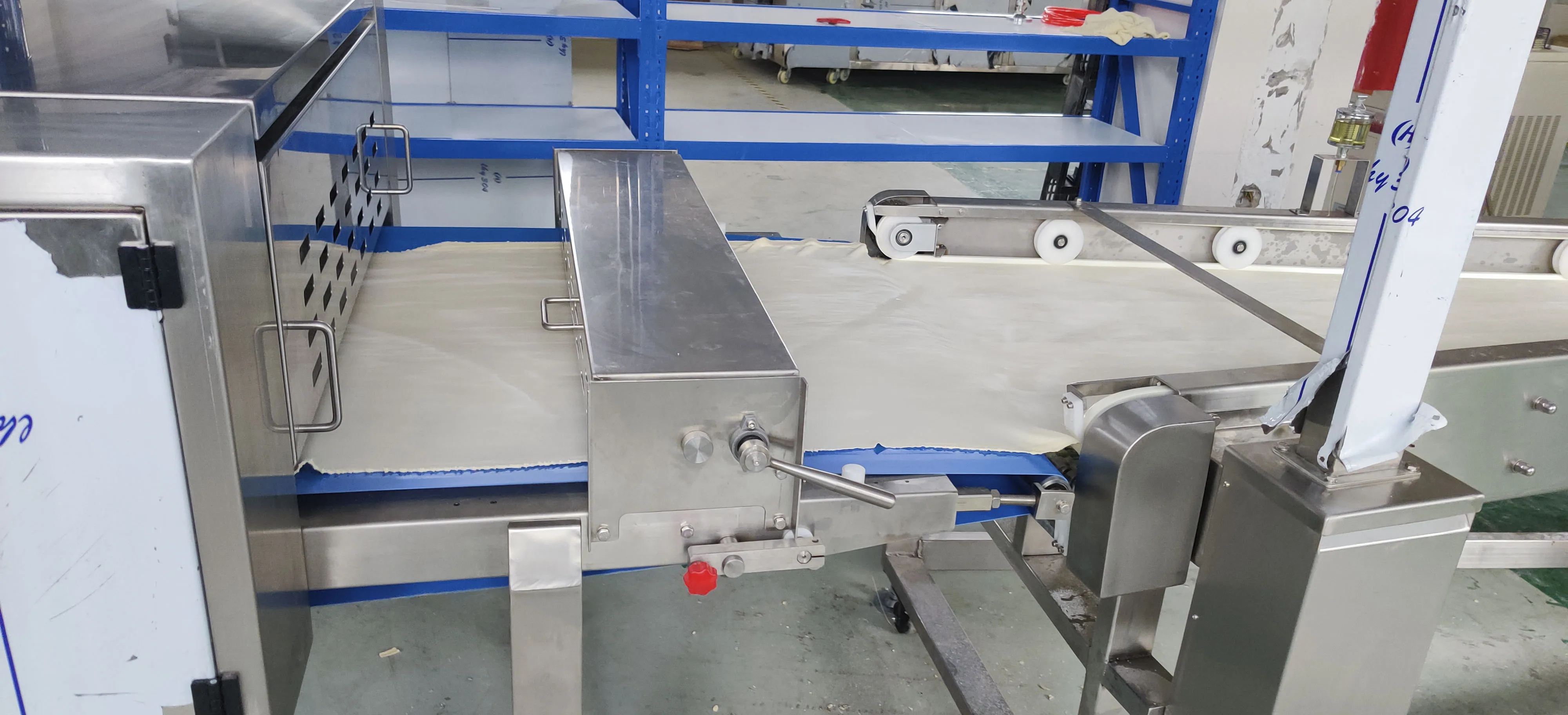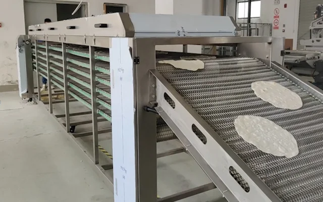 The breads are moistened by a sprayer after baking to prevent over-drying and fragile. The lavashs are conveyored to the cooling line to cool down.