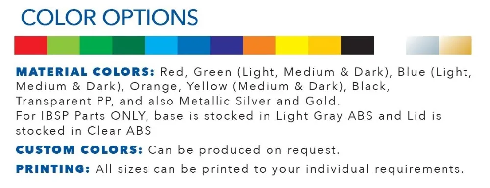 Our Insert Boxes are available in natural or colored Polypropylene (PP) and is 100% recyclable. Custom colors available.