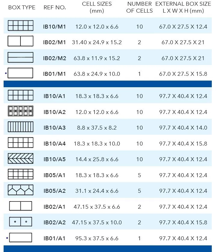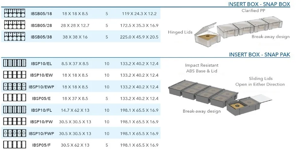 Insert Boxes are the ideal packaging solution for high quality carbide blade inserts as well as any small delicate set of items that require individual compartmental storage.