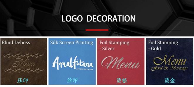 We provide 3 decorating options (1) Silk screen (2) Foil Stamp (3) Blind emboss