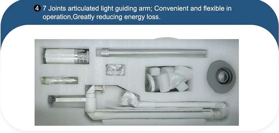 Seven-section light guide arm imported from South Korea, easy to operate, 360° rotation without dead angle Internal gold-plated lens, good refraction and reflection effect, high light output rate, uniform light output without loss