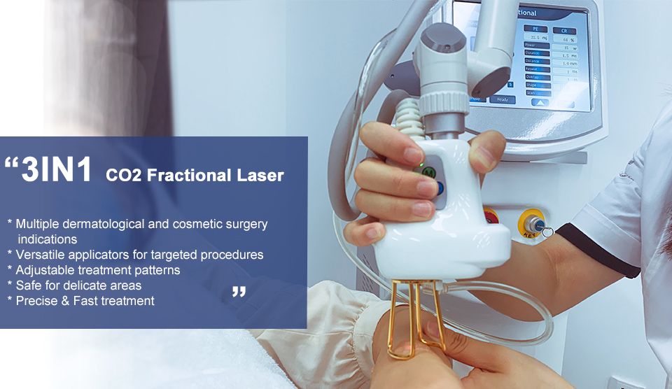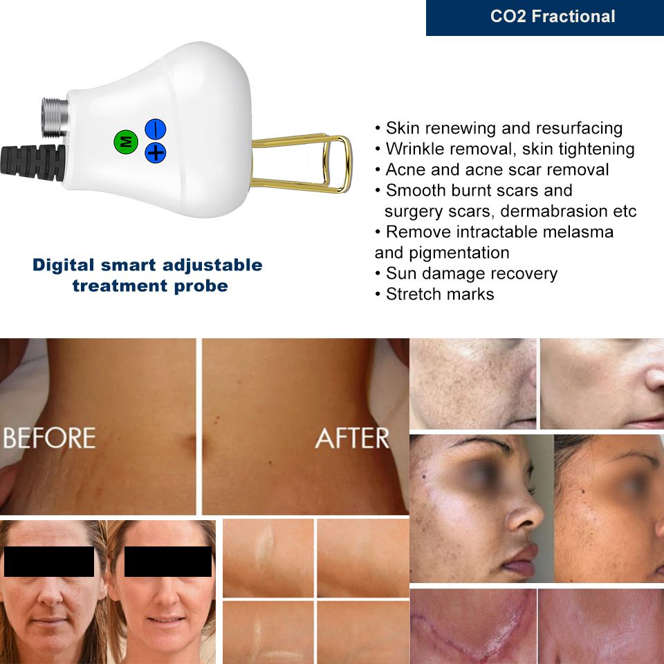 The fractional CO2 laser is used for treating moderate to deep wrinkles, skin texture changes from sun damage, wrinkles, acne scars, and scars. It can be used on the face, neck, chest, arms, legs, and abdomen.
