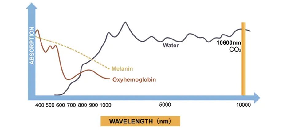 Fractional CO2 Laser treatments can be applied to deeper tissues with a wavelength of 10600nm according to other lasers.