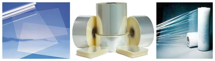 rigid films, shrik films, stretch films, plastic films, plastic composite films, paper-plastic composite films,aluminized films, aluminum foil, aluminum composite films, high barrier films and many others. Eg. PET, OPP, CPP, LDPE, BOPP