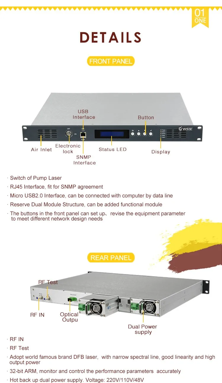 1.With two kinds of optical port in front panel and optical port in back panel. 19"1U rack, advanced stainless steel shell