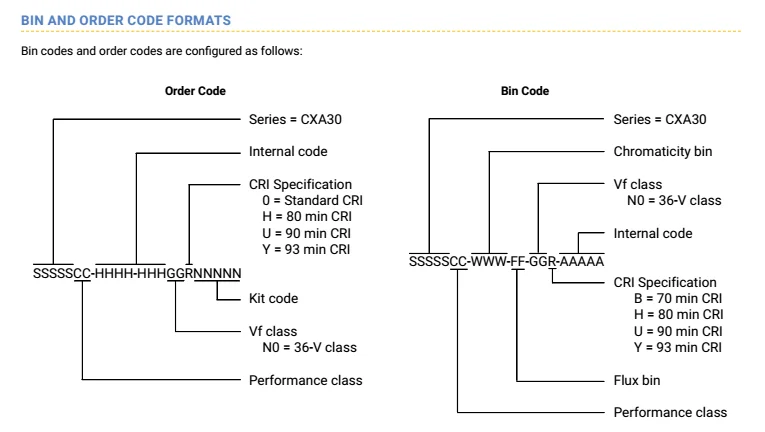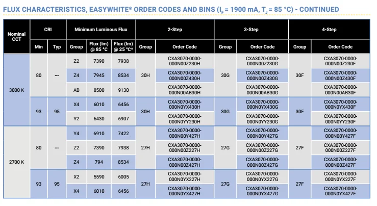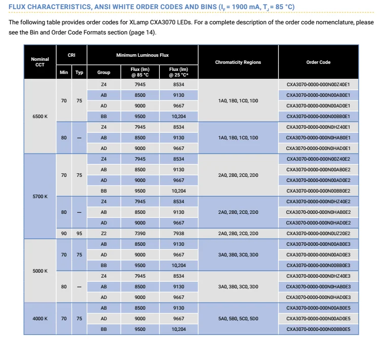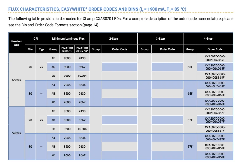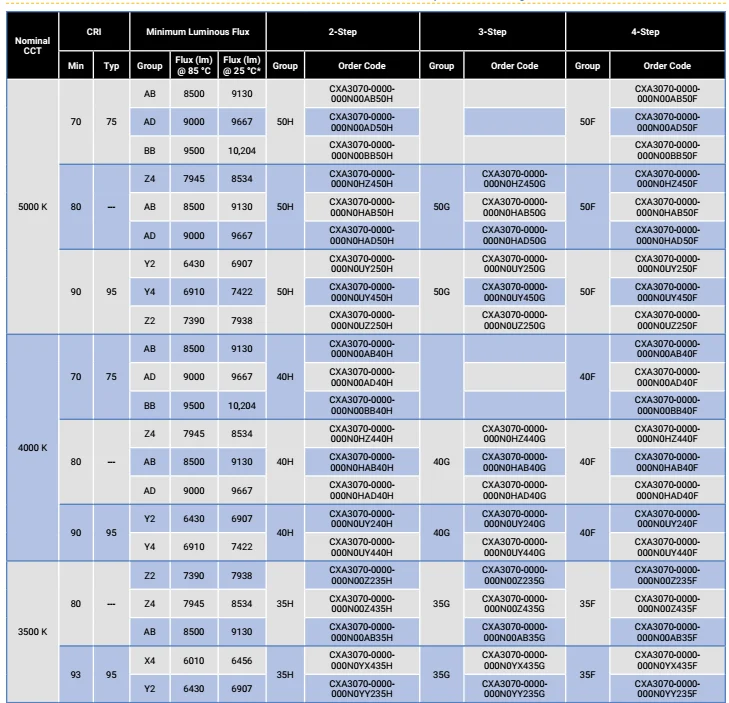 Order Code for Cree XLamp CXA3070 LEDs: