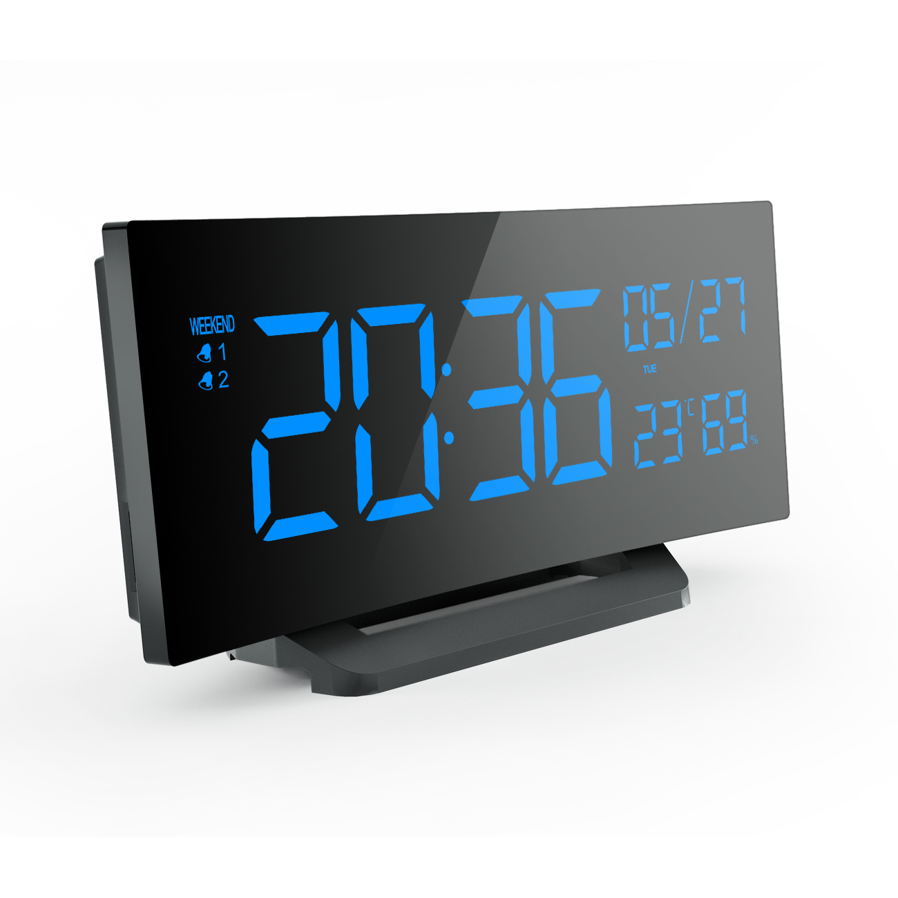 PREMIUM 6.5” LED DISPLAY WITH DIMMER: 6.5inch curved-screen clock shows the time clearly, HAPTIMEclock with 4 levels of brightness(OFF/Dim/Bright/Brighter) .12/24 hours can be set manually and 12 hours with AM/PM indicators.