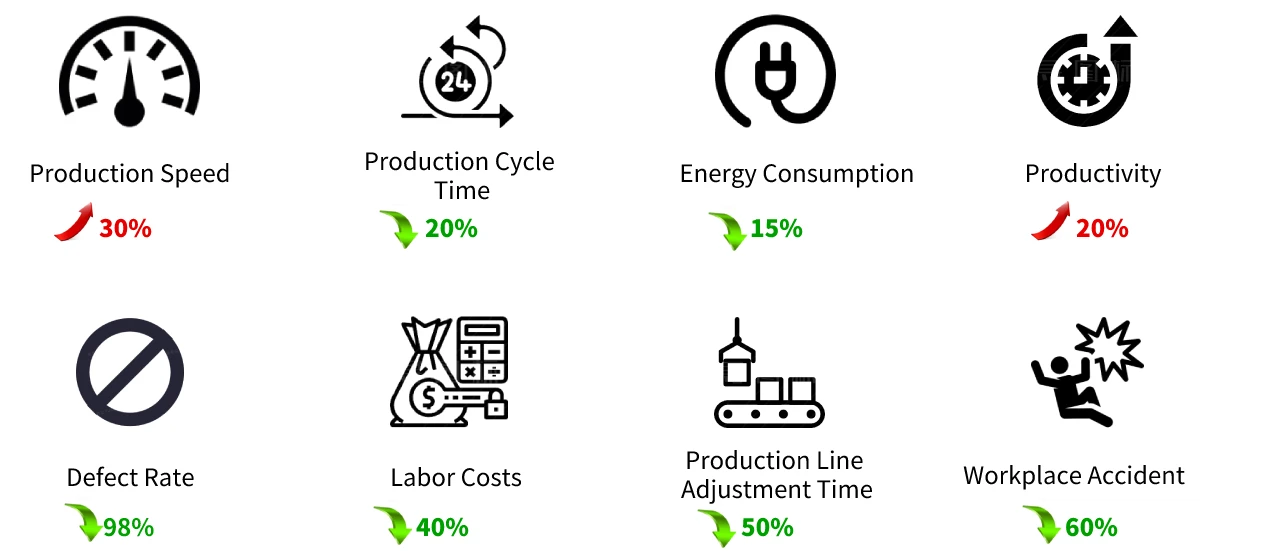 Full coverage of load and working range; repeat positioning accuracy +0.03mm. absolute positioning accuracy 0.1mm; working speed increased by 20%.