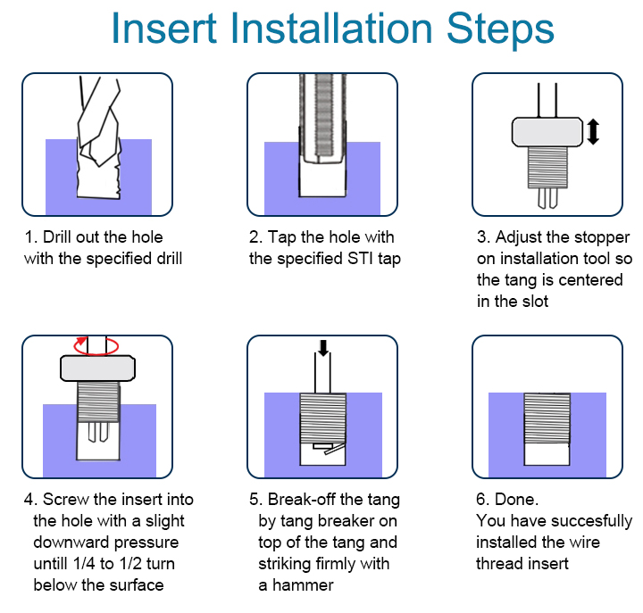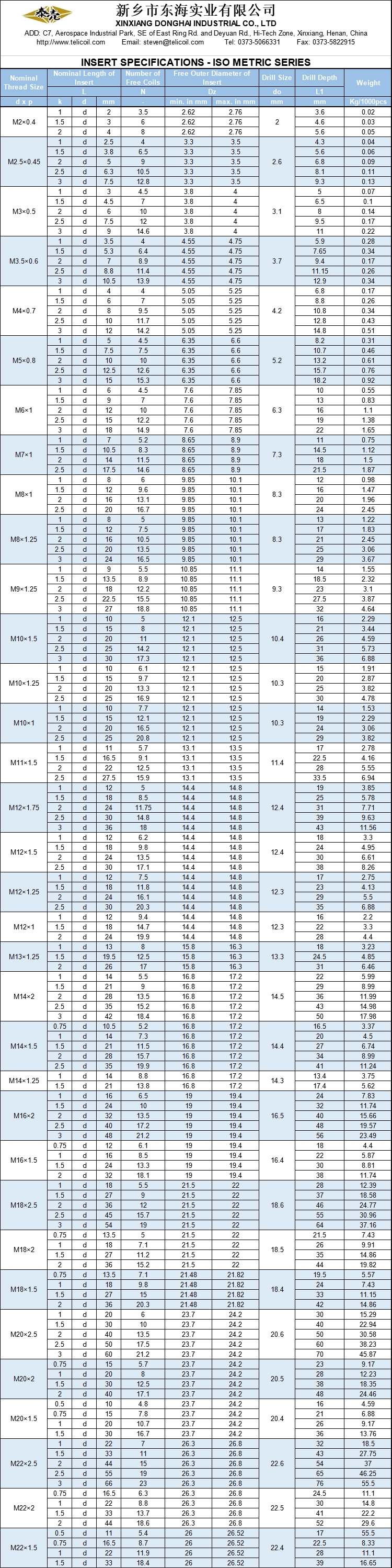 Insert Installation Instruction:1. Drill and prepare the base hole in the parent material using certain proper size drill bit to Donghai recommended dimensions.