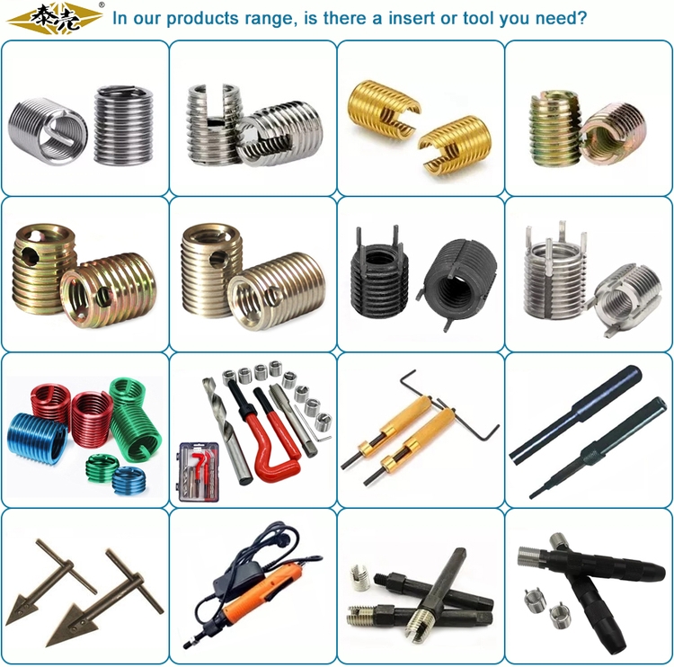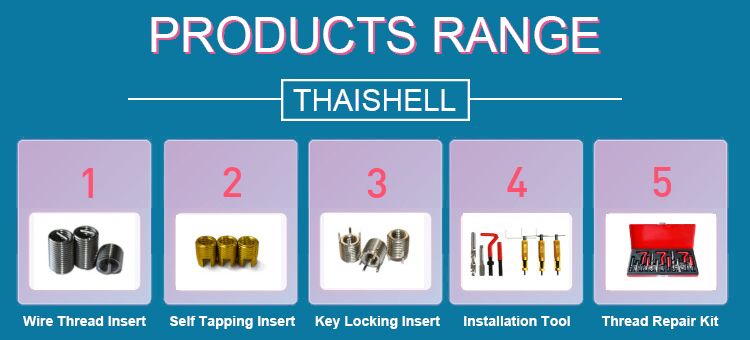 A: Our product range includes wire thread insert, self taping thread insert, key insert, tap, heavy duty keensert, etc. We strictly implement various quality standards such as GB, ISO, DIN, JIS, AISI NFE, BSW, etc., and also accept non-standard products.