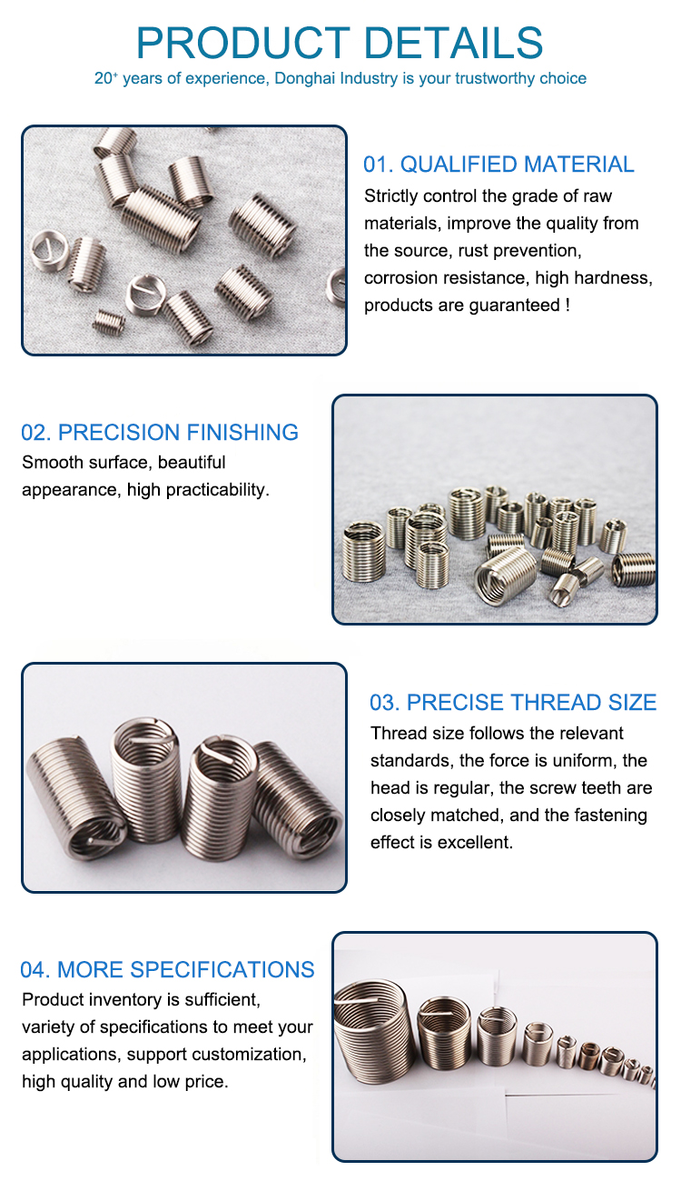 Donghai Thaishell Wire Thread Insert Heli Coil Insert Screw Fasteners Stainless Steel M6*1.5*1.5d Available Unified UNC, UNF