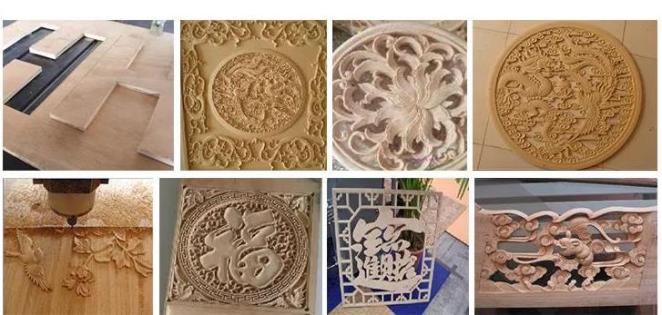 1) Furniture: wooden doors, cabinets, plate, office and wood furniture, tables, chair, doors and windows. 2) The wood products:voice box, game cabinets, computer tables, sewing machines table, instruments. 3) Plate processing: insulation part, plastic chemical components, PCB, inner body of car, bowling tracks, stairs, anti bate board, epoxy resin, ABS, PP, PE and other carbon mixed compounds. 4)Decorate industry: Acrylic, PVC, MDF, artificial stone, organic glass, plastic and soft metals such as copper, aluminum plate engraving and milling process.