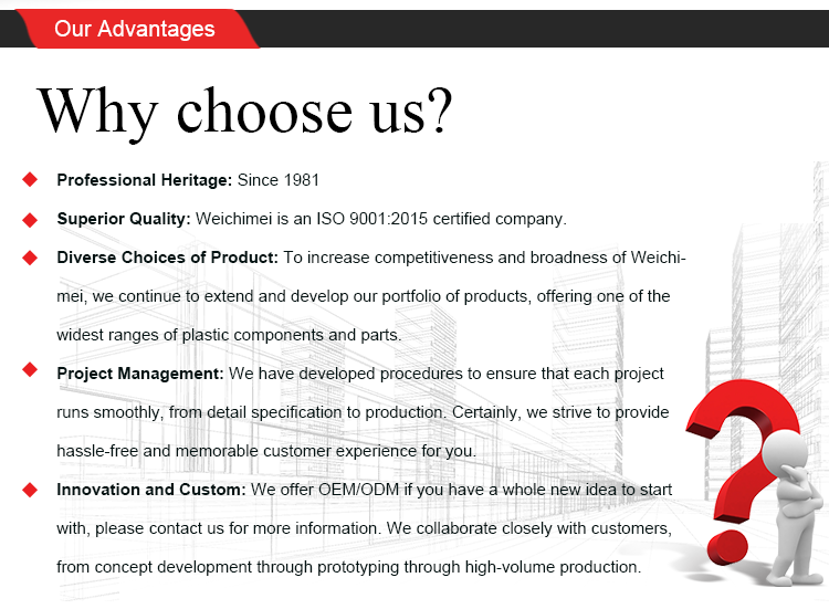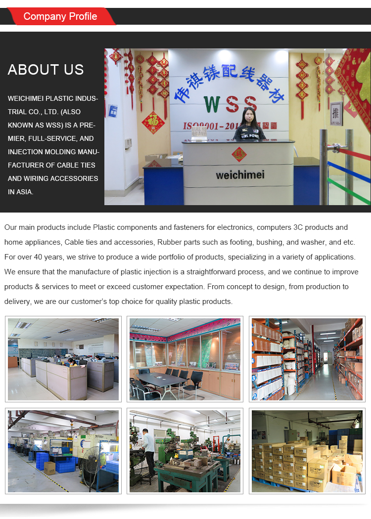 WEICHIMEI TECHNOLOGY INDUSTRIAL CO.,LTD. is a professional technology manufacturer of wiring accessories, dedicated to wiring equipment mold design, product development, mass production and sales. We are specialized in the production of LED spacer support, PC board accessories, adhesive tie mounts, nylon cable ties, electronic plastic fasteners, connectors, terminals and other products, and undertake OEM and ODM plastic product production. Our products are widely used in home appliances, electronic equipment, and etc.