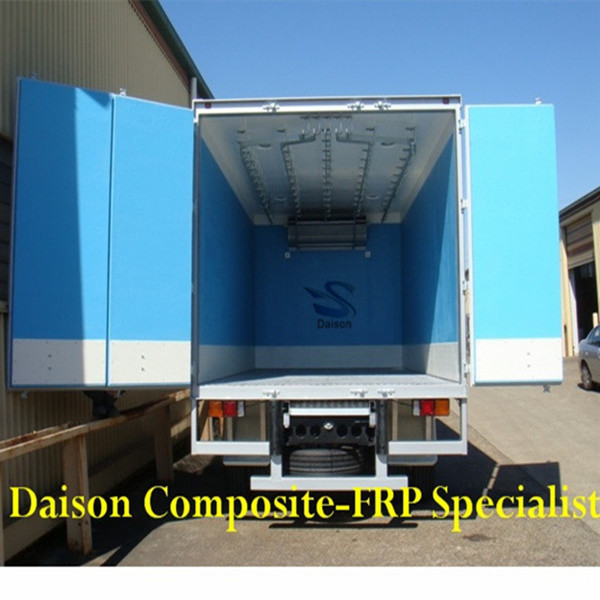 Polyurethane Sandwich panels are the most important components in the construction of modern commercial Insulated / Refrigerated Truck. QINGDAO DAISON polyurethane sandwich panels are made from 2 facings, used high-strength FIBRERGLASS REIFORCED POLYMER (FRP) flat sheet, and centre core is injected with rigid polyurethane foam. 100mm thickness of rigid polyurethane foam had stand as the best thermal insulation of standard refrigerated truck.