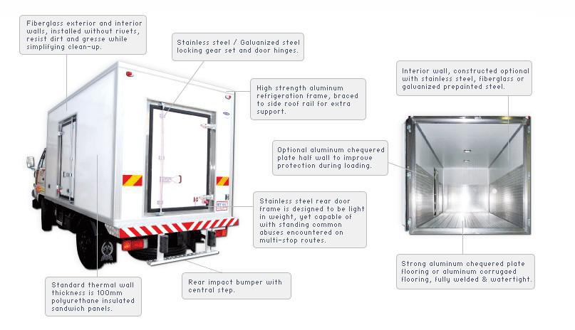 QINGDAO DAISON Insulated / Refrigerated truck bodies are made from, generally composed of the following components;