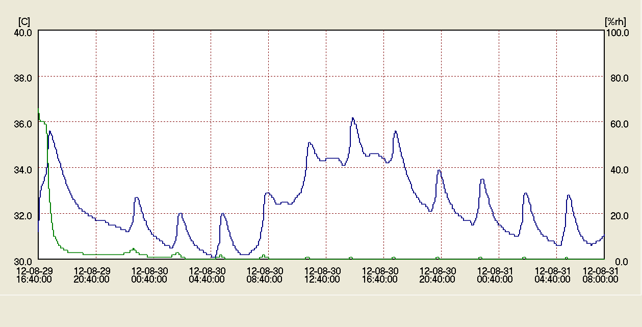 Alarm buzzer sounds when its internal humidity/door open time exceeds set value