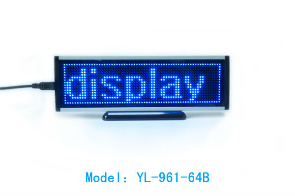 YL-961-64B led dot matrix display 1mm is made of high brightness SMD LED and shining aluminum shell,mainly used on the desk to show welcome message or product promotion message as a moving text advertisement.