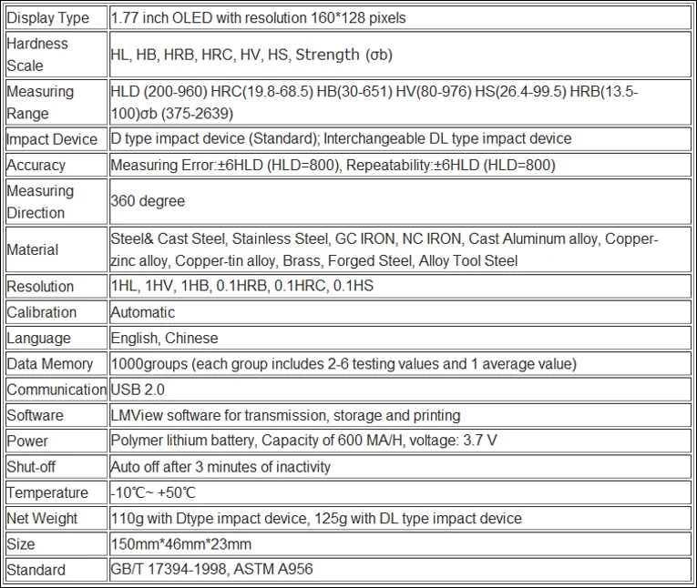 Hardness scale include HRC, HRB, HV, HB, HS, HLand σb.