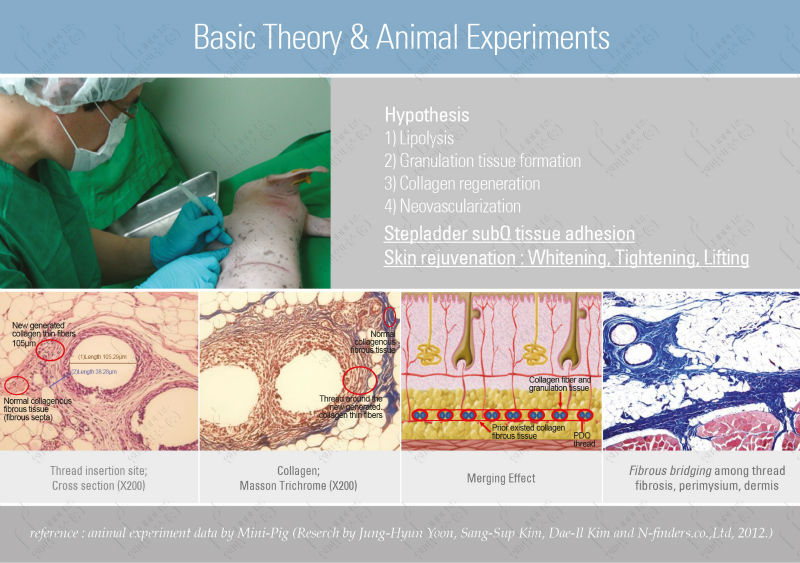 'Nfinders had 4times clinical tests to get the long term follow-up result more than a year using MINI pig. On the basis of this clinical trial results(animal test), Nfinders present the first english test report about PDO thread in the world.