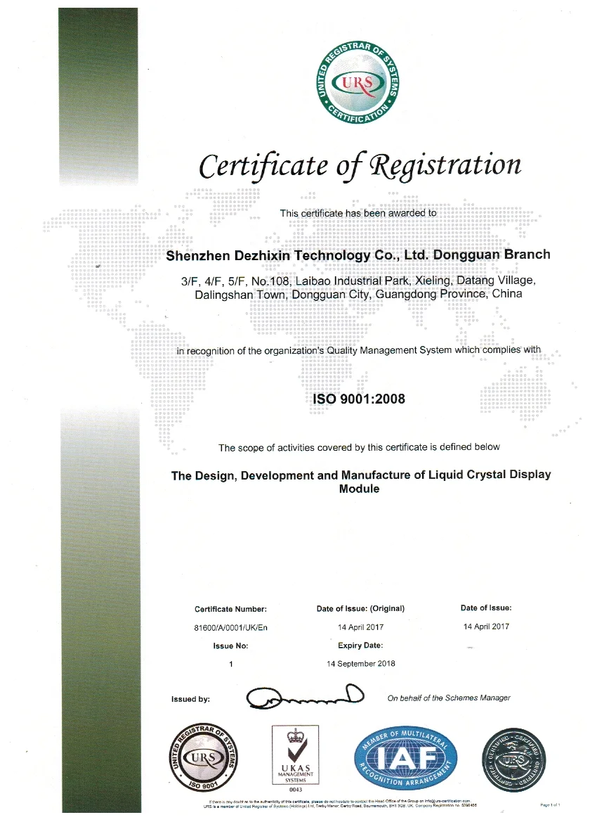 DAS INDUSTRY LMITED was founded in Shanghai in 2005 by a group of experienced engineer who inspired to create a new range of innovative and high quality LCD module. With 9years experience, base on factory, positively develop new market, always keep good quality, best service and fast response, we believe in coming true to be the leader of LCD manufacturer !