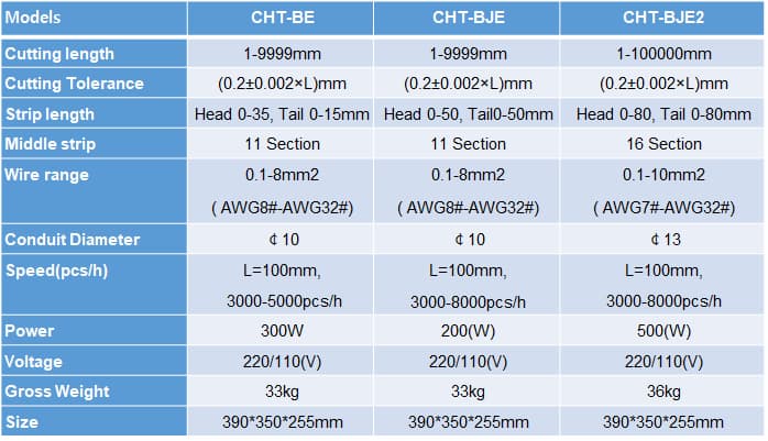 This wire cutting and stripping machine is suitable for processing of small gauge wires. Processing wire range: 0.1-2.5sqmm