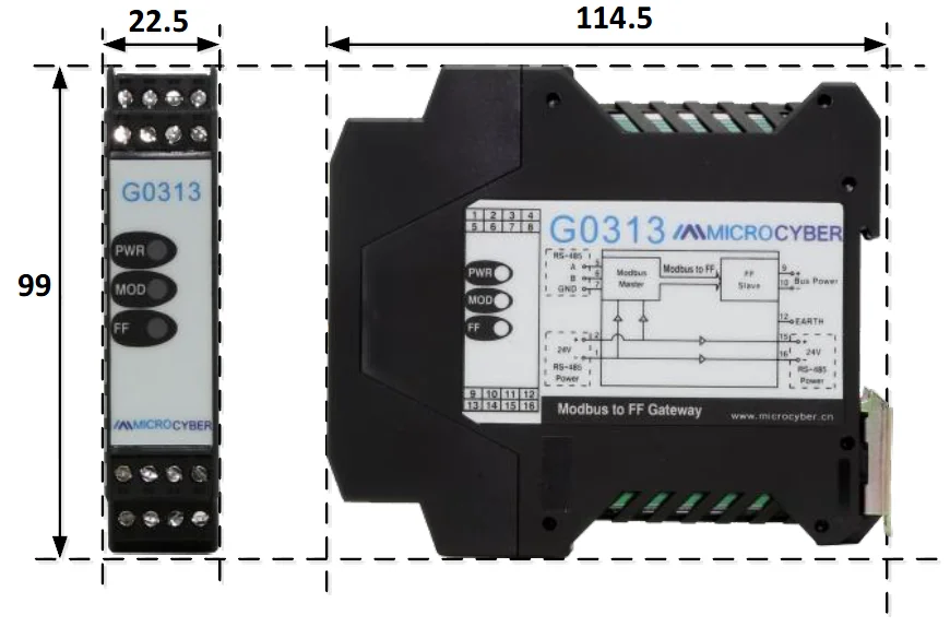 Size of G0313 Modbus to FF Gateway (Unit:mm)