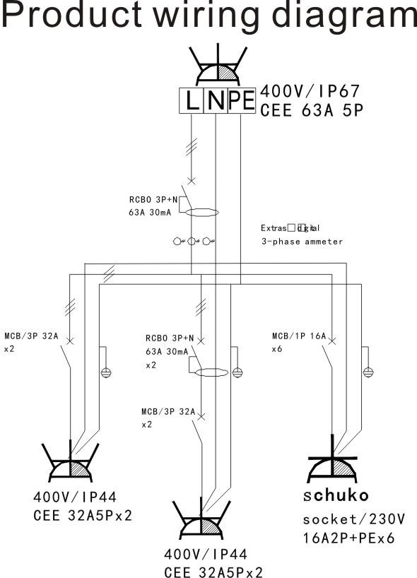 输出:8x schuko 插座 4x CEE 32A 400V 5P