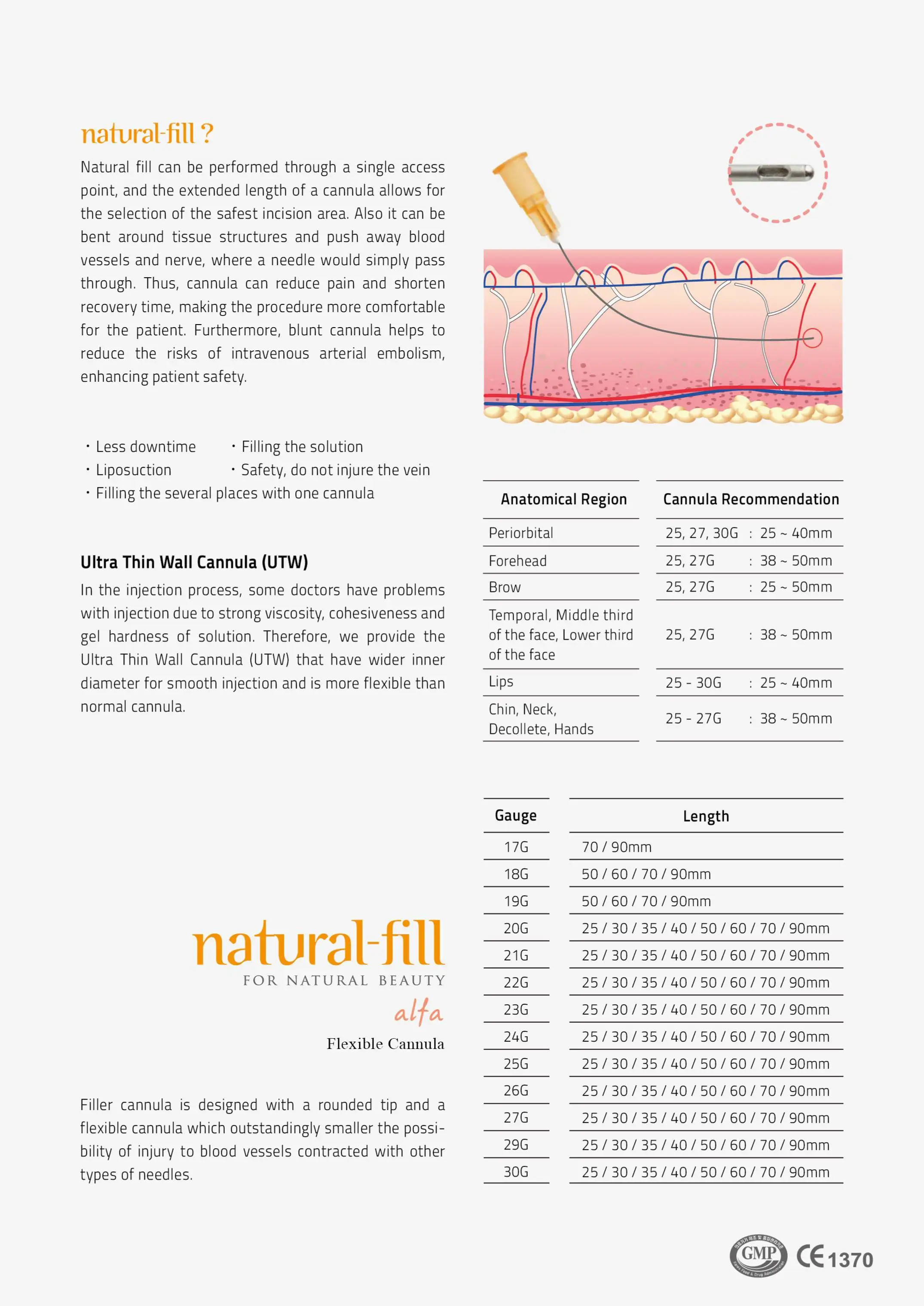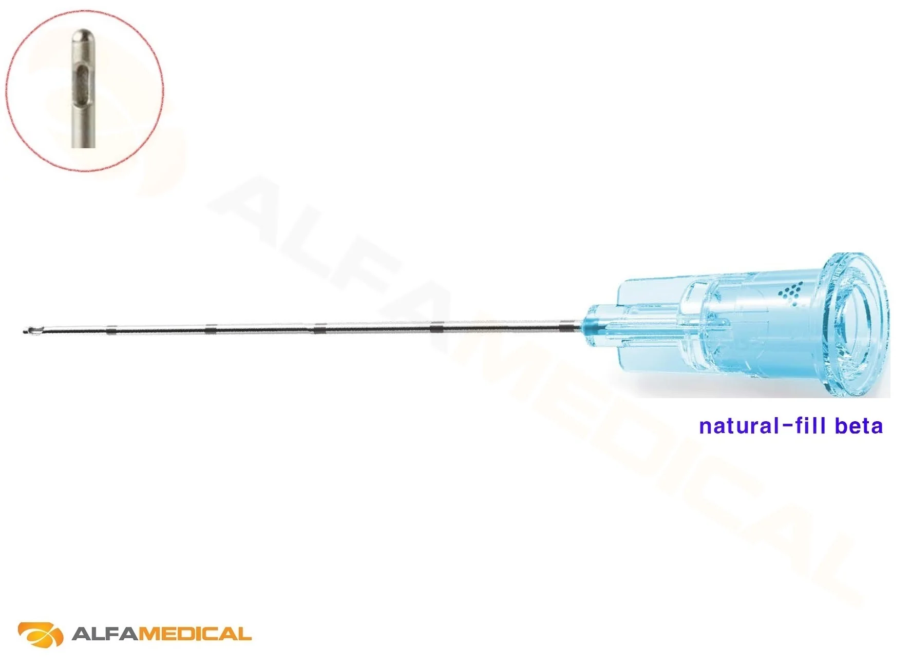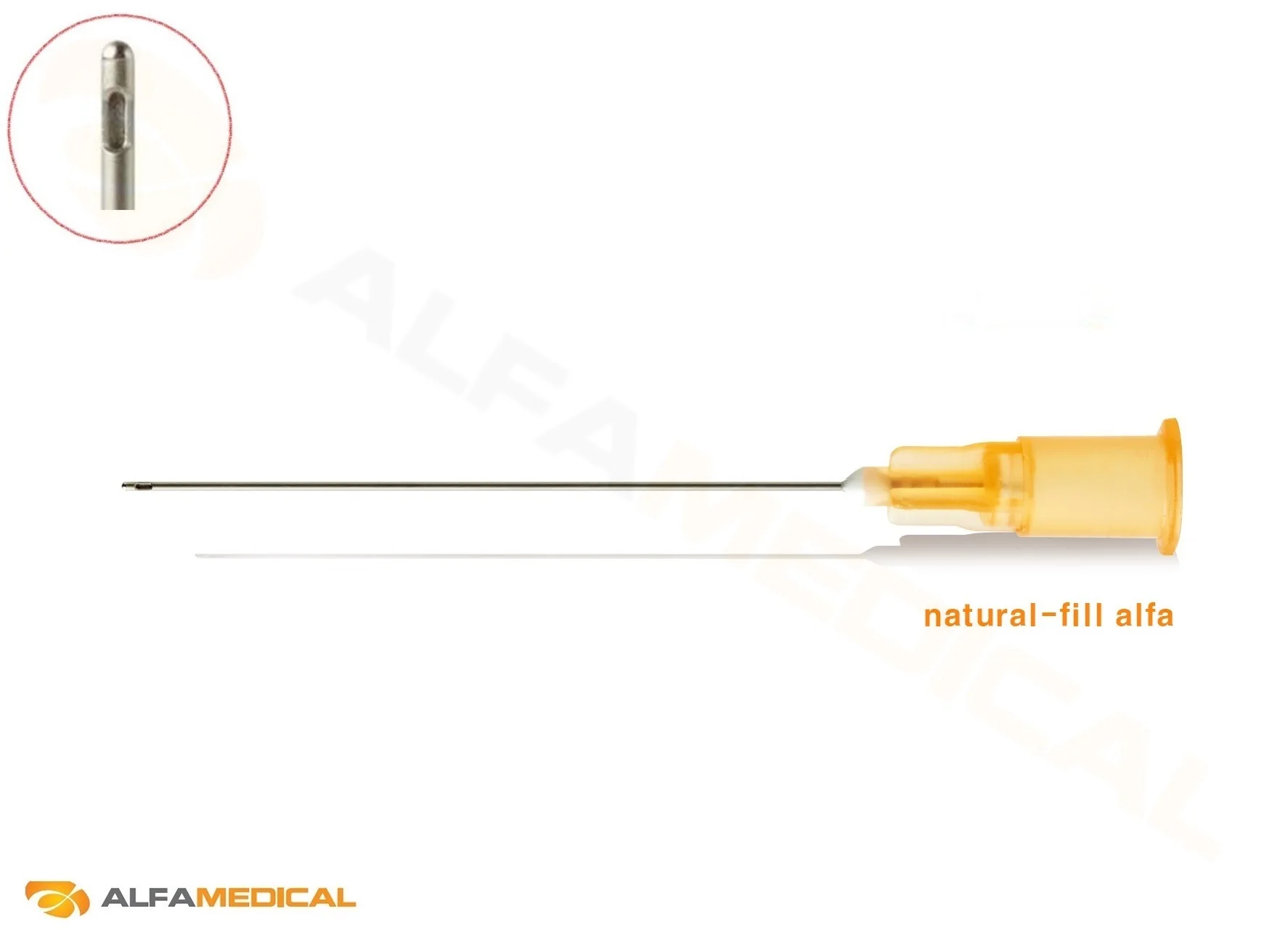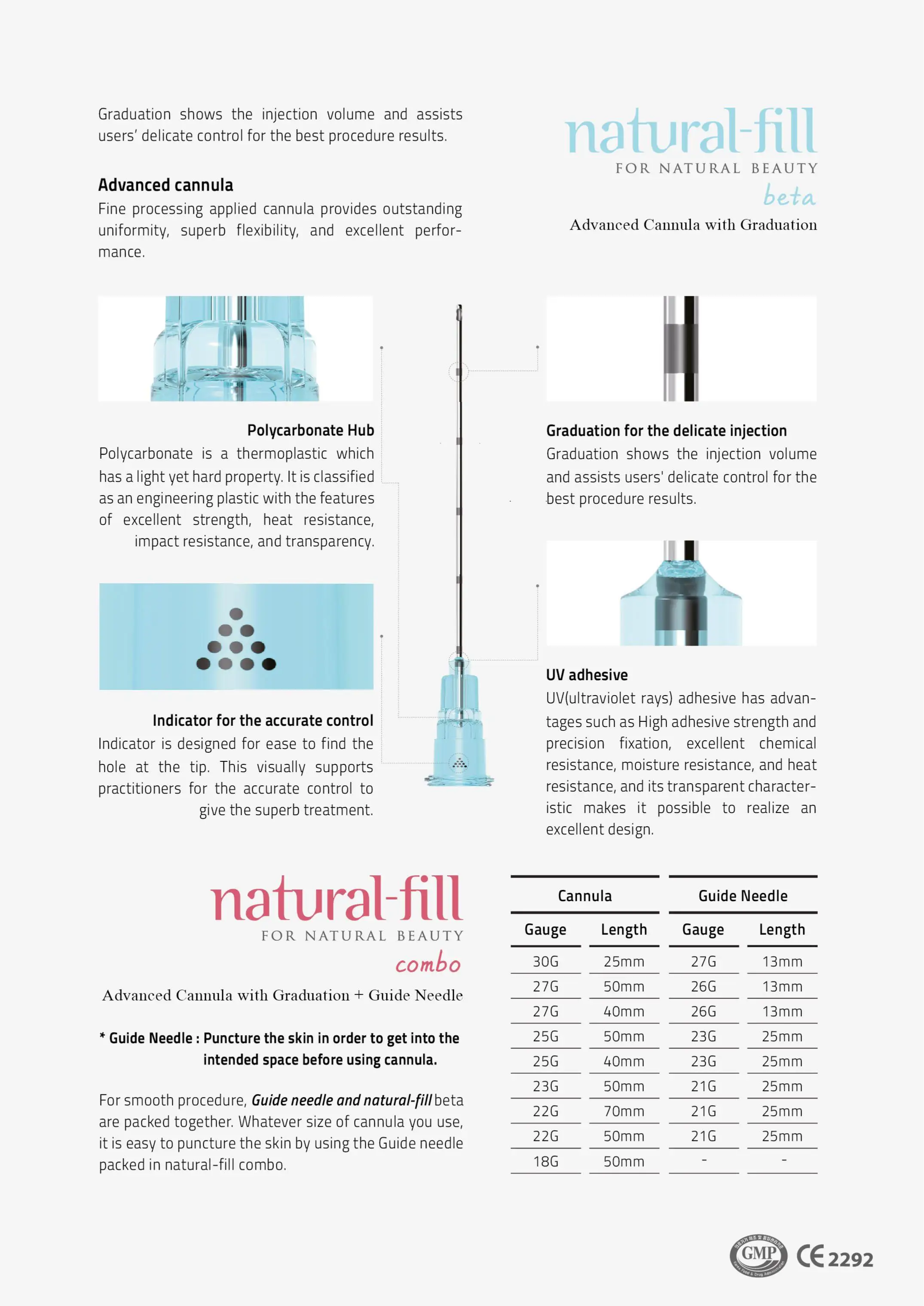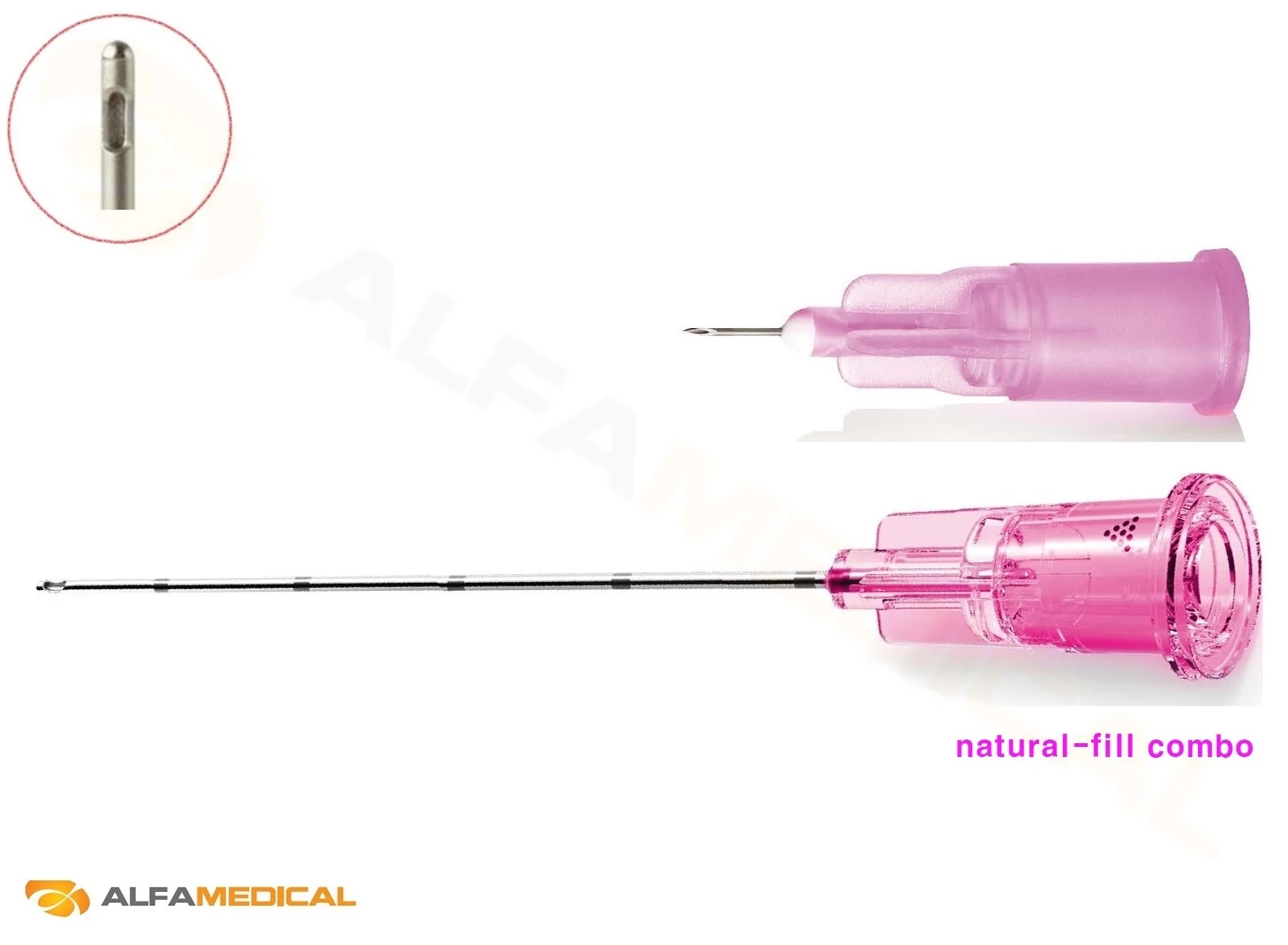 Whatever size of cannula you use, it is easy to puncture the skin by using the sharp needle packed in Natural fill (combo)