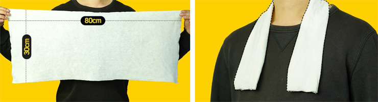 Though compact at just 4.5cm x 4.5cm, it expands into a large 30cm x 80cm towel when unfolded.