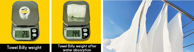 Towel Billy is highly compressed and easy to carry anywhere, anytime