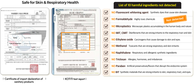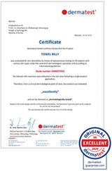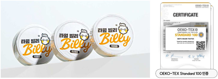 Towel Billy has received world-renowned certifications from Dermatest(Germany), TUV, and SGS, ensuring its safety and quality.