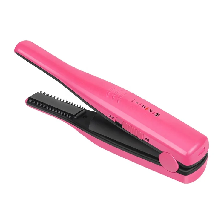 Professional USB Rechargeable Ceramic Mini Hair Straightener with Comb Portable Cordless Hair Iron