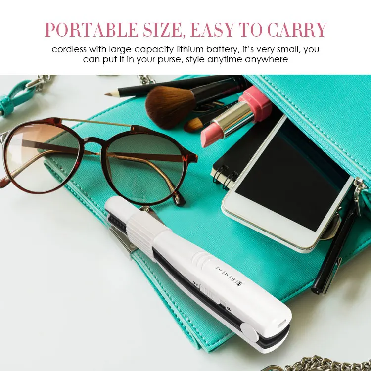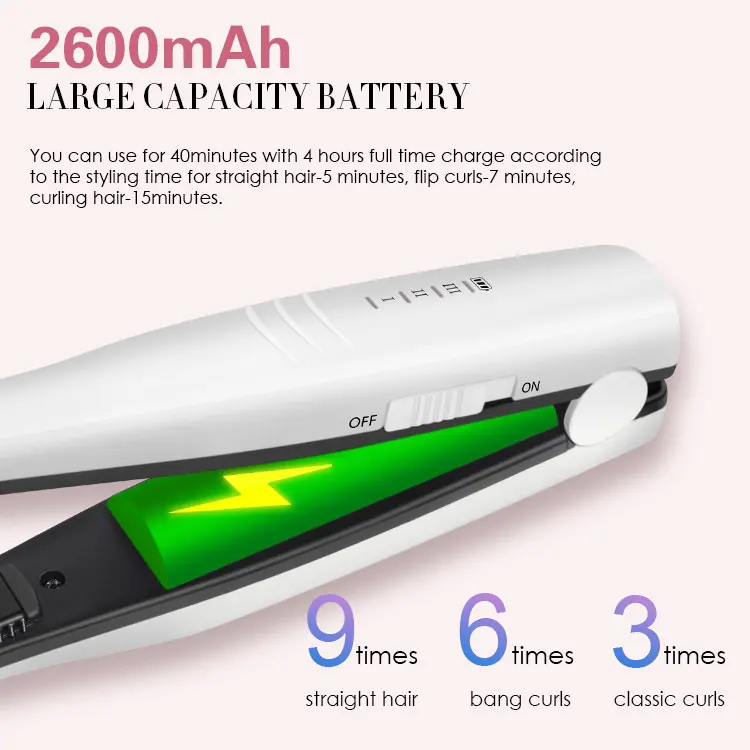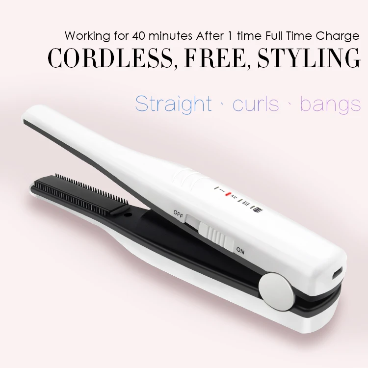 [ Cordless Design & USB Rechargeable ] 5V micro USB rechargeable 18W wireless mini hair straightener. Its lithium battery gives 40 minutes continuous running time once 4 hours full charged. You can recharge this styling tool even in the car. Amazingly convenient for travel.