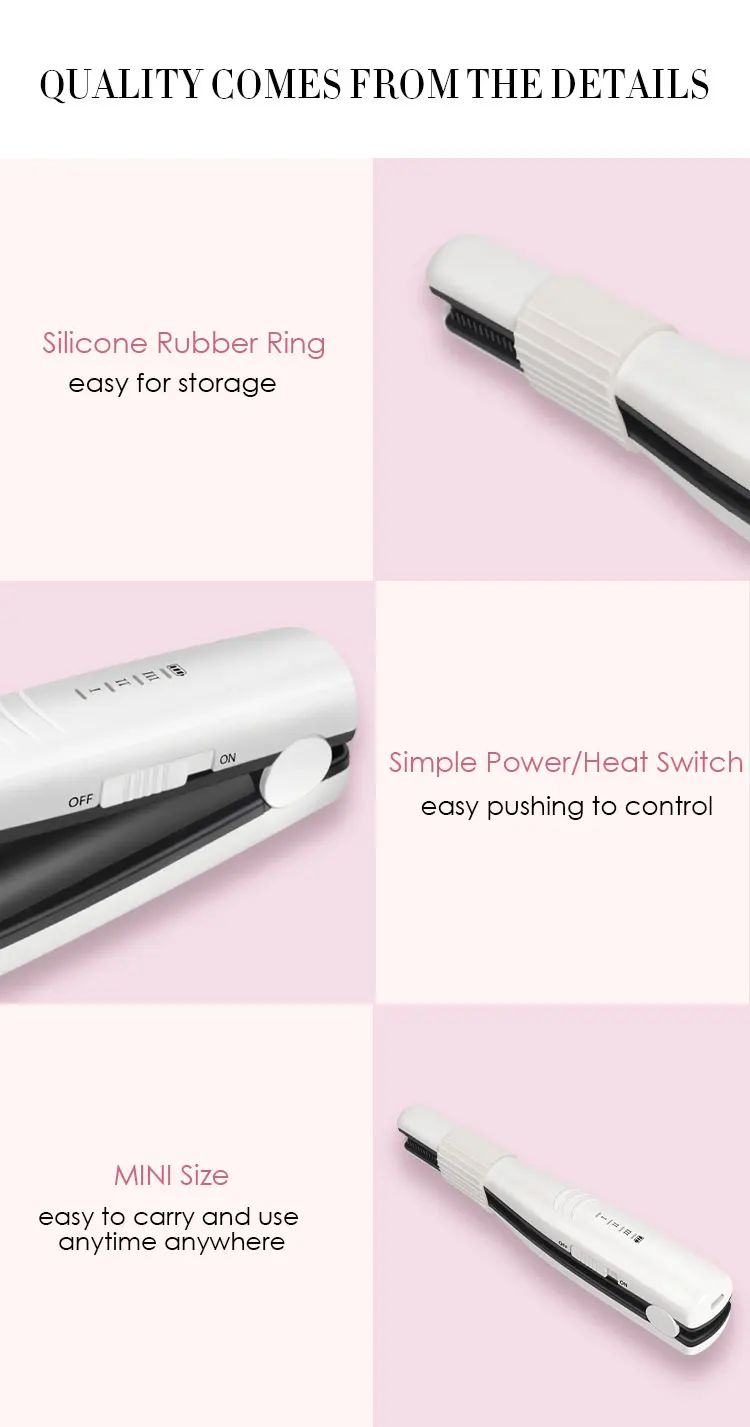 [ Portable Mini Size ] 7.2 inch small and lightweight, great for easy transportation. Put it in luggage, a purse or even a cosmetic bag, so you can take the tiny flat iron anywhere you go and be sure your hair will be straight and styled whenever you need.