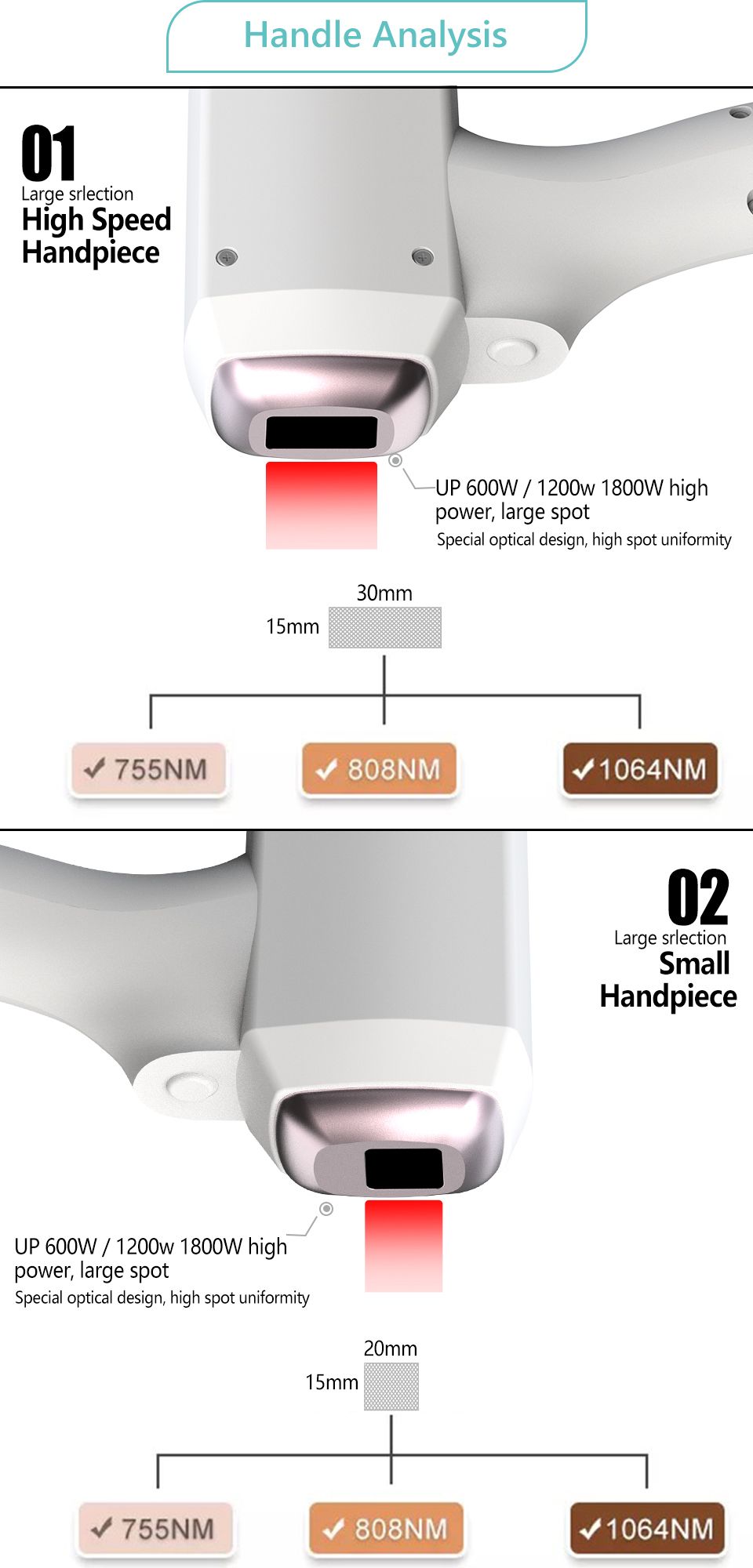 4. Diode laser No Crystal design, handle piece are pretty light,It allows you to work in a comfortable state for a long time and Reduce the probability of handle damage.
