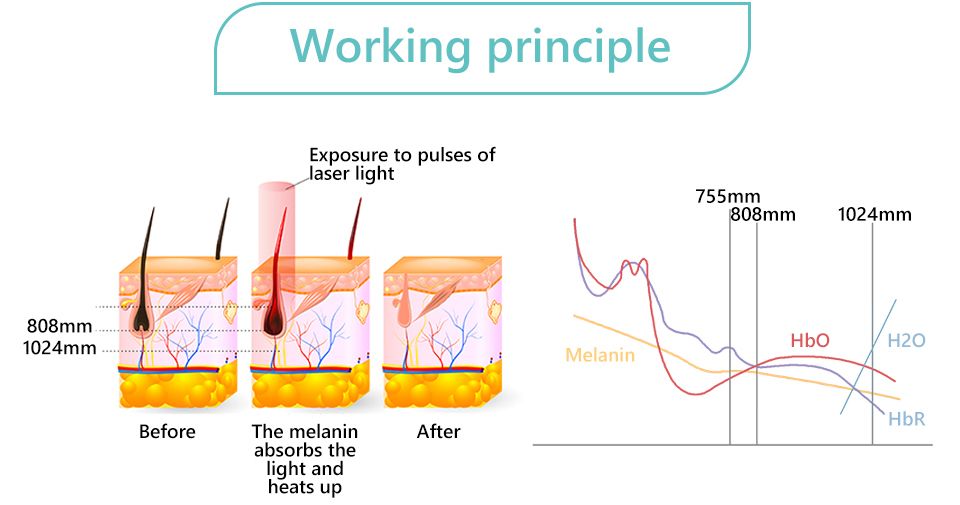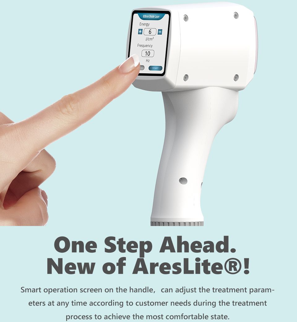 AresLite® is that the laser energy of a specific wavelength is absorbed by the melanin in the hair follicle, and then converted into heat, which raises the temperature of the hair follicle tissue and ultimately achieves tissue destruction.
