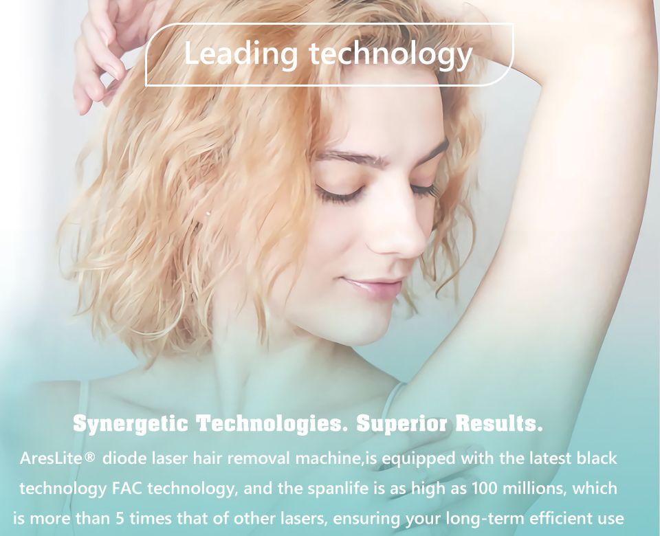 AresLite® diode laser hair removal machine,is equipped with the latest black technology FAC technology, and the spanlife is as high as 100 millions, which is more than 5 times that of other lasers, ensuring your long-term efficient use.