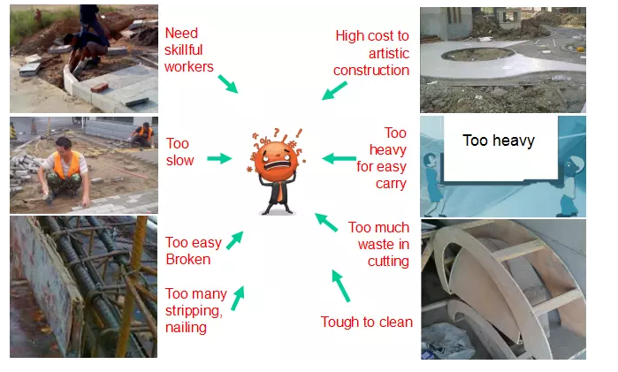 Character #6: Reduce 8 headaches in concrete construction for garden, pathway, sidewalk, foundation, road pave, etc.